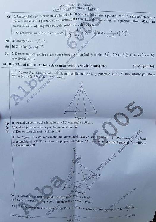 Subiecte matematica evaluare nationala 2019.